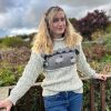 Hand-Knitted Wool Sweater – Nordic Pattern – Brown, Beige & Blue – Unisex Size L/XL